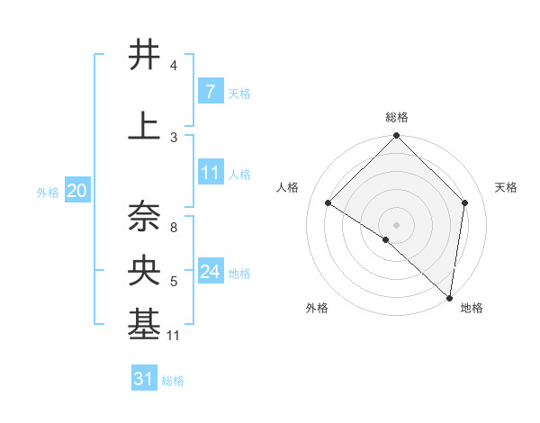井上 奈央基さんを姓名の画数から五運を鑑定