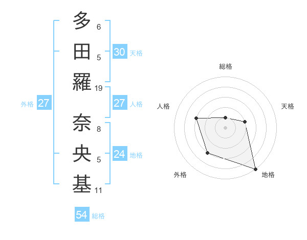 多田羅 奈央基さんを姓名の画数から五運を鑑定