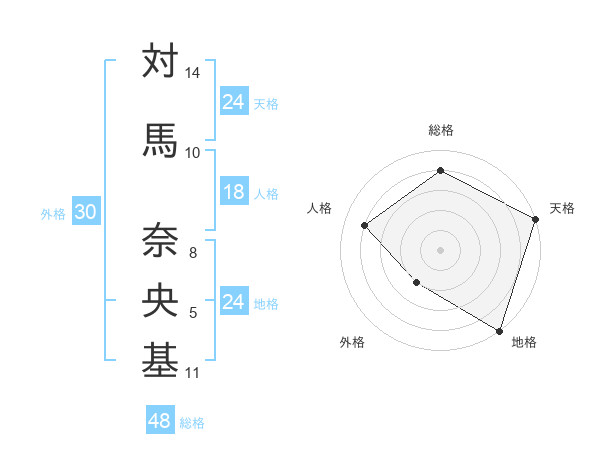 対馬 奈央基さんの天格は24画の5点!