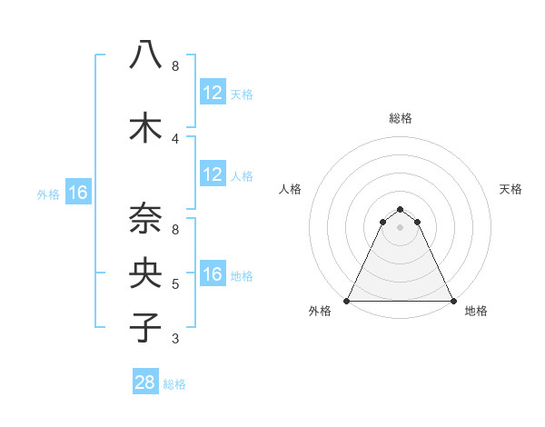 八木 奈央子さんを姓名の画数から五運を鑑定