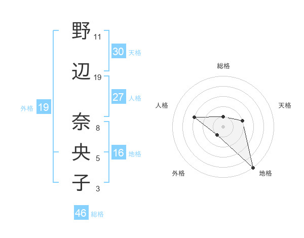 野辺 奈央子さんを姓名の画数から五運を鑑定