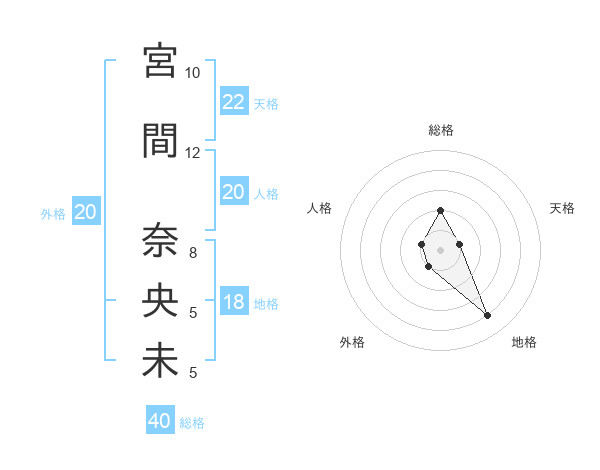 宮間 奈央未さんを姓名の画数から五運を鑑定