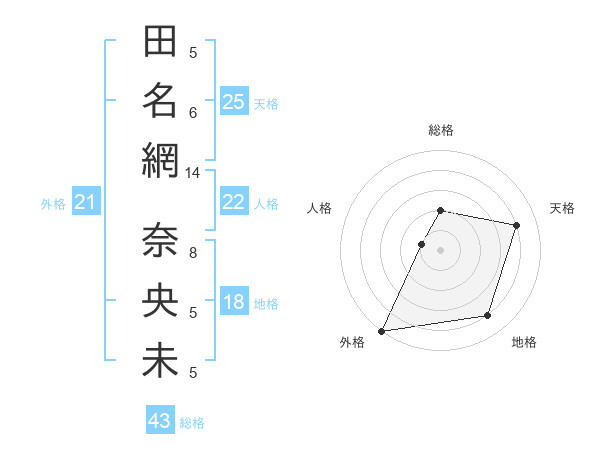 田名網 奈央未さんの総格は43画の2点