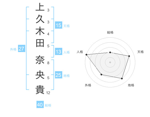 上久木田 奈央貴さんを姓名の画数から五運を鑑定