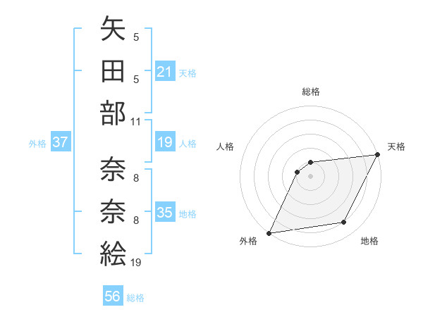 矢田部 奈奈絵さんを姓名の画数から五運を鑑定