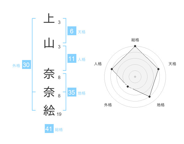 上山 奈奈絵さんを姓名の画数から五運を鑑定