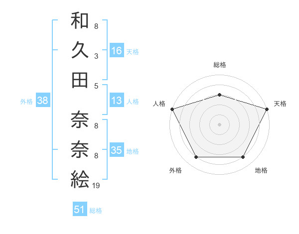 和久田 奈奈絵さんの外格は38画の4点
