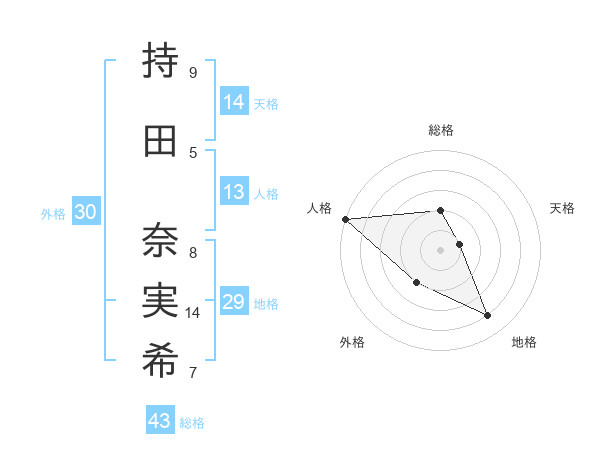 持田 奈実希さんを姓名の画数から五運を鑑定