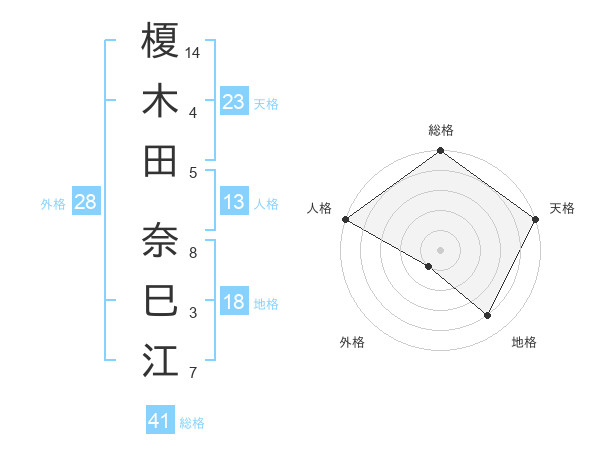 榎木田 奈巳江さんを姓名の画数から五運を鑑定