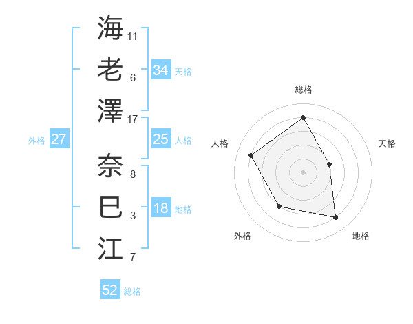 海老澤 奈巳江さんを姓名の画数から五運を鑑定
