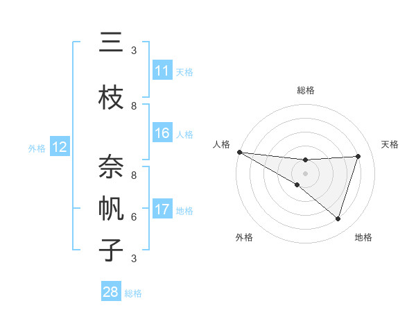 三枝 奈帆子さんを姓名の画数から五運を鑑定