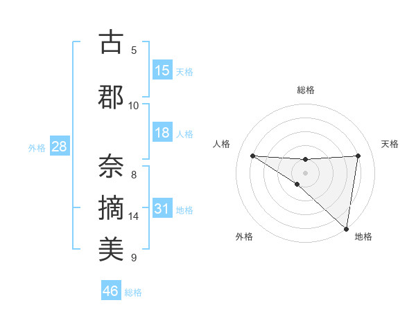 古郡 奈摘美さんを姓名の画数から五運を鑑定
