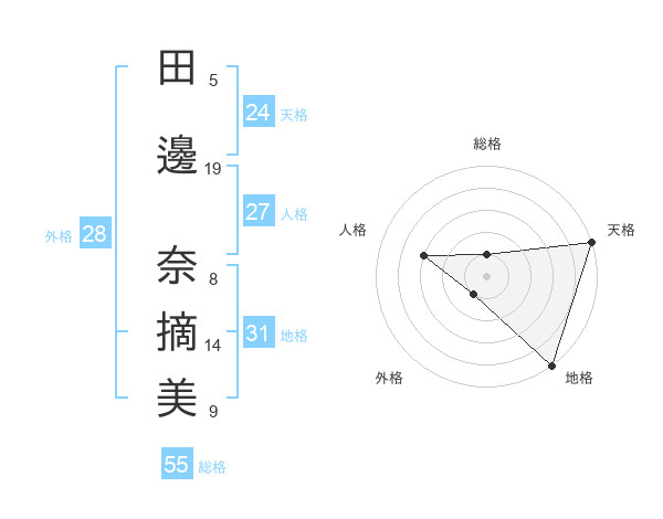 田邊 奈摘美さんを姓名の画数から五運を鑑定