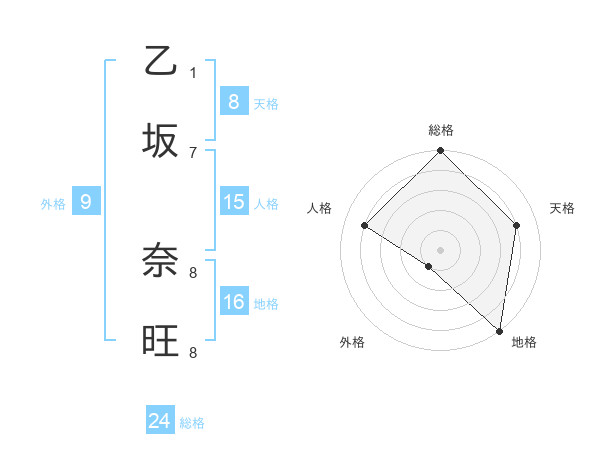乙坂 奈旺さんを姓名の画数から五運を鑑定