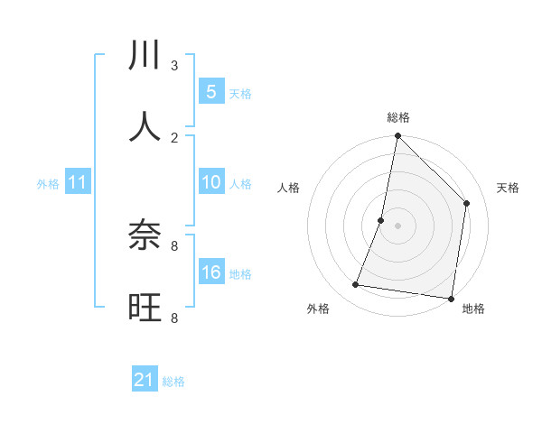 川人 奈旺さんを姓名の画数から五運を鑑定