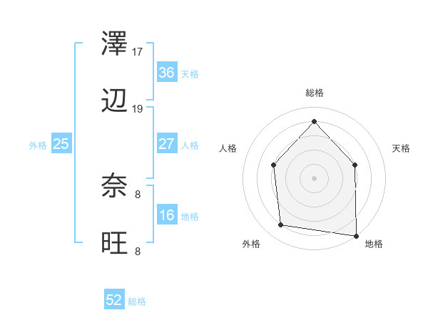澤辺 奈旺さんの総格は52画の4点!