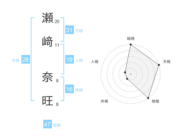 瀬﨑 奈旺さんの総格は47画の5点!