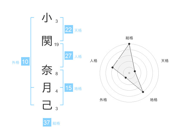 小関 奈月己さんを姓名の画数から五運を鑑定