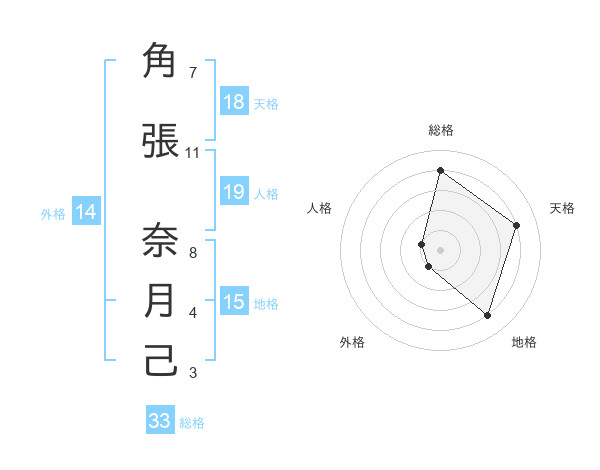 角張 奈月己さんの外格は14画の1点!