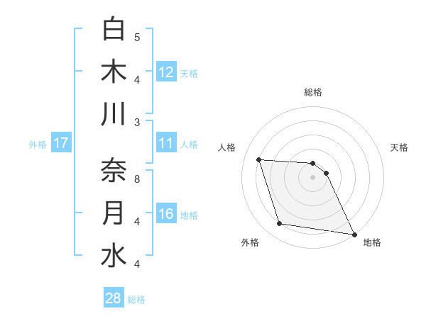 白木川 奈月水さんを姓名の画数から五運を鑑定