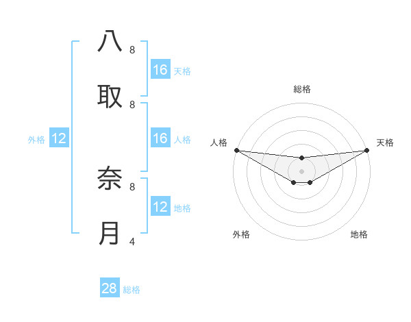 八取 奈月さんの総格は28画の1点!