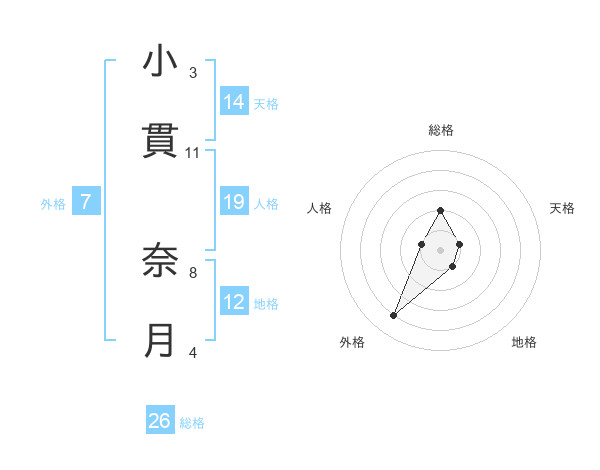 小貫 奈月さんの総格は26画の2点!