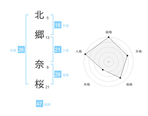 北郷 奈桜さんの人格は21画の5点!