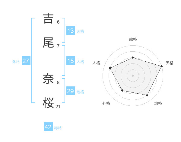 吉尾 奈桜さんの総格は42画の3点!