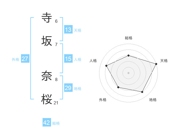 寺坂 奈桜さんを姓名の画数から五運を鑑定