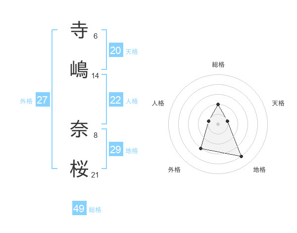 寺嶋 奈桜さんの総格は49画の2点!
