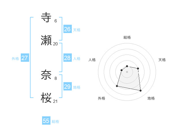 寺瀬 奈桜さんの天格は26画の2点!