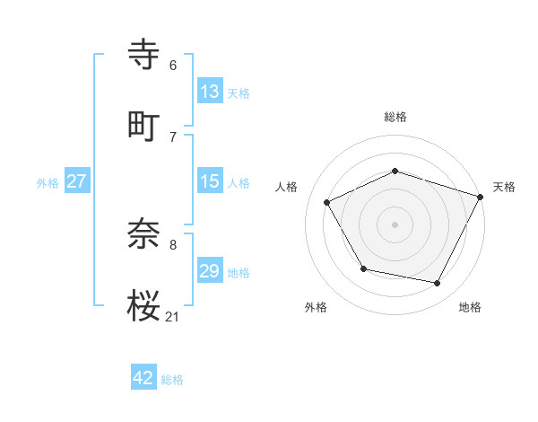 寺町 奈桜さんの天格は13画の5点!