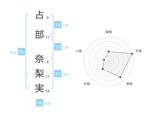 占部 奈梨実さんの総格は49画の2点!