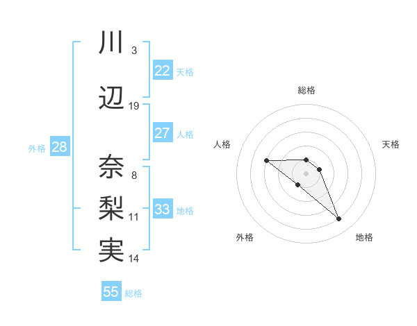 川辺 奈梨実さんを姓名の画数から五運を鑑定
