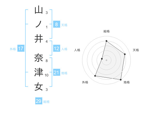 山ノ井 奈津女さんを姓名の画数から五運を鑑定