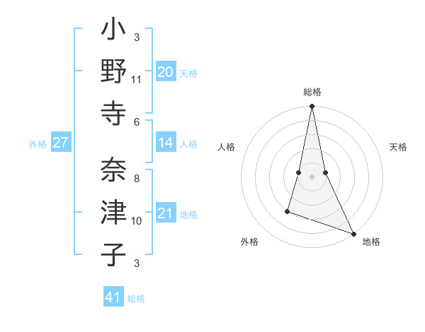 小野寺 奈津子さんを姓名の画数から五運を鑑定