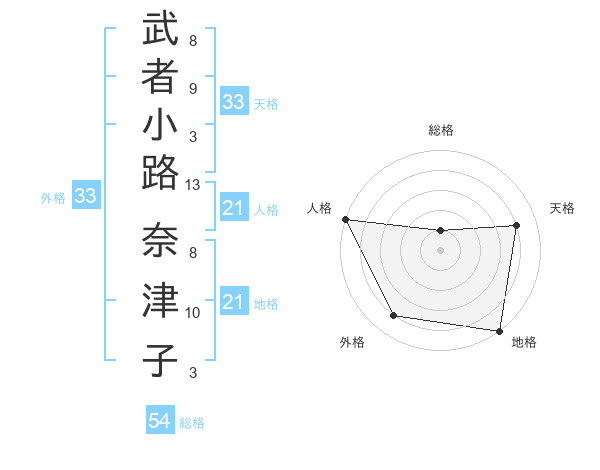 武者小路 奈津子さんを姓名の画数から五運を鑑定
