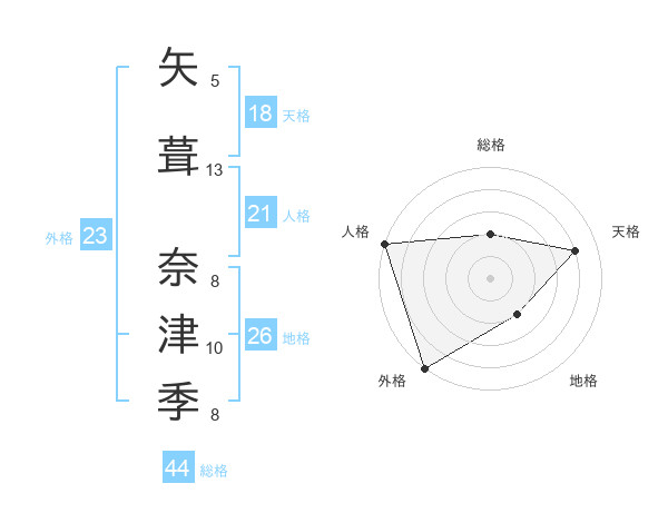 矢葺 奈津季さんを姓名の画数から五運を鑑定
