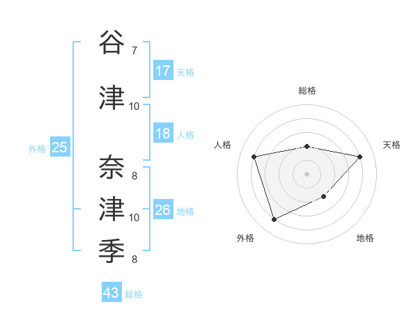 谷津 奈津季さんを姓名の画数から五運を鑑定
