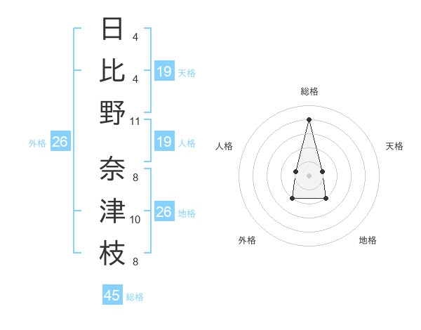 日比野 奈津枝さんを姓名の画数から五運を鑑定