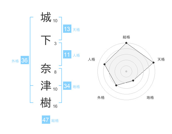 城下 奈津樹さんを姓名の画数から五運を鑑定