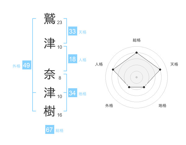 鷲津 奈津樹さんの総格は67画の4点!