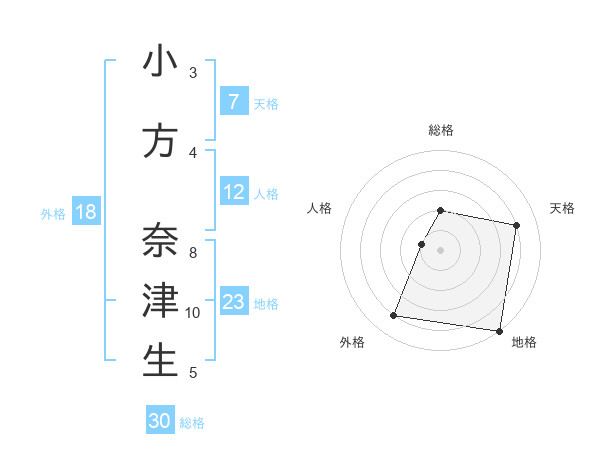小方 奈津生さんの総格は30画の2点!