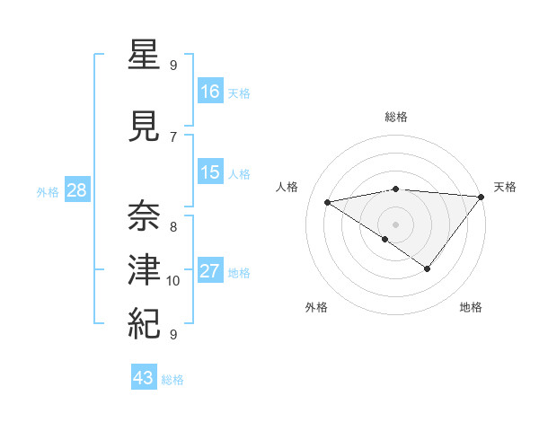 星見 奈津紀さんの天格は16画の5点!