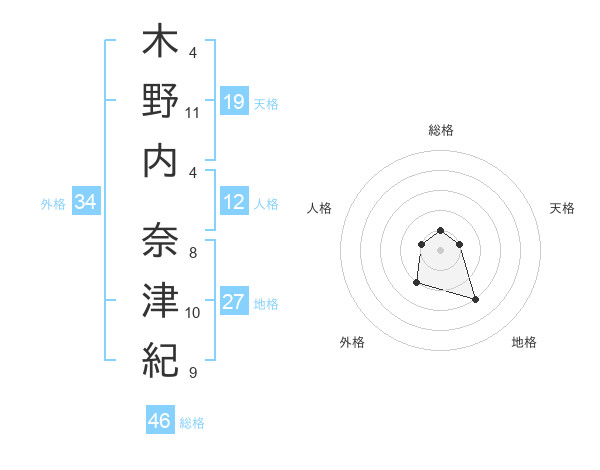 木野内 奈津紀さんを姓名の画数から五運を鑑定