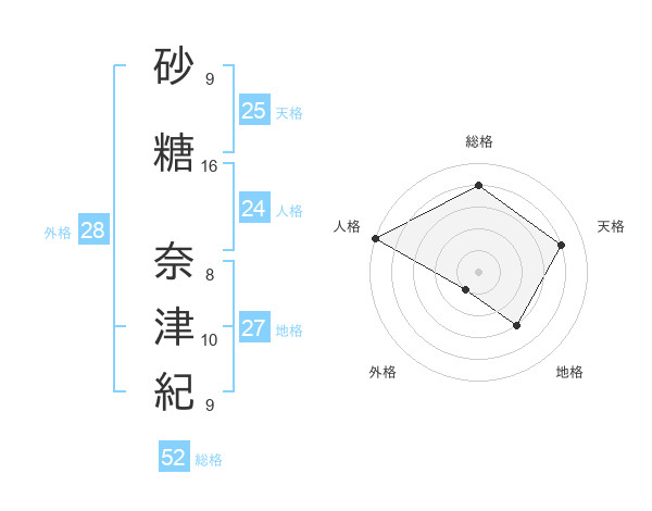砂糖 奈津紀さんを姓名の画数から五運を鑑定