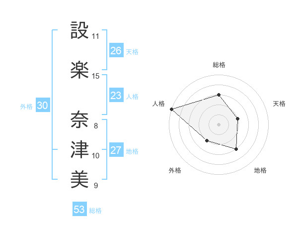 設楽 奈津美さんの総格は53画の3点!