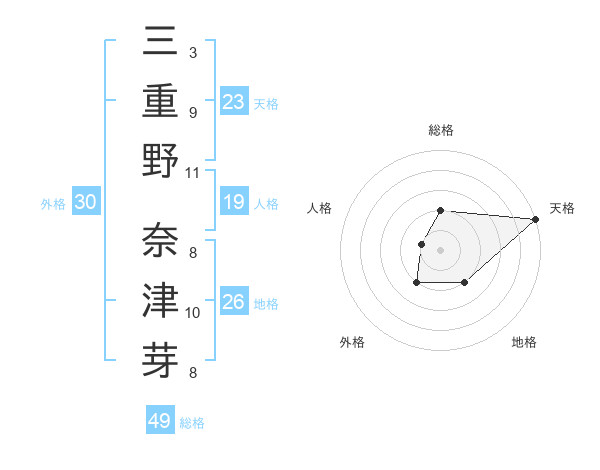 三重野 奈津芽さんを姓名の画数から五運を鑑定