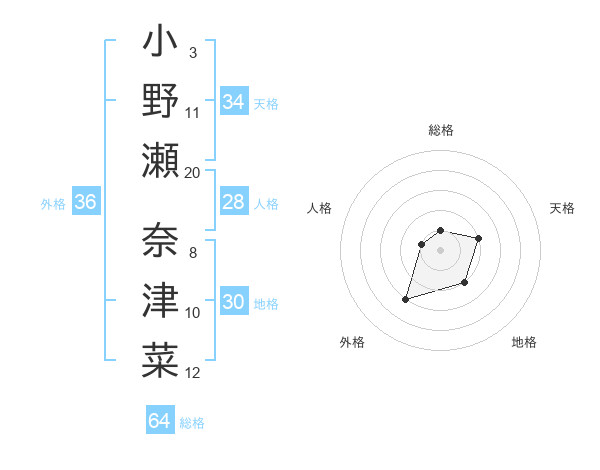 小野瀬 奈津菜さんを姓名の画数から五運を鑑定