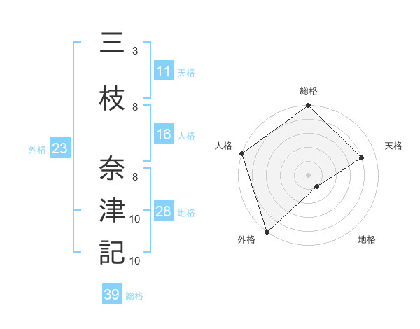 三枝 奈津記さんを姓名の画数から五運を鑑定